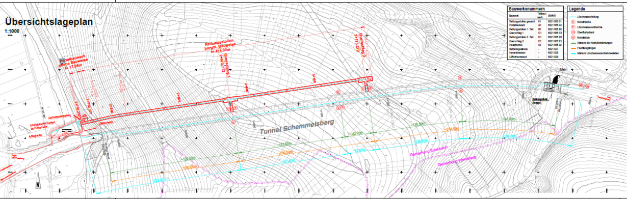Mit der hier beschriebenen Baumaßnahme, bei der unter anderem ein Rettungsstollen hergestellt und der bestehende Tunnel instandgesetzt sowie auf den neuesten Stand der Technik (RABT 2006 und 2016 sowie EABT 80/100) gebracht wird, sollen die Sicherheitsanforderungen für Tunnelanlagen der aktuellen Vorschriftenlage realisiert werden.