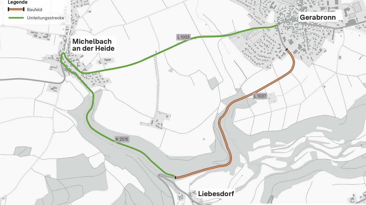 Seit August 2025 wird auf der L 1037 der Abschnitt zwischen dem Knotenpunkt L 1037 / K 2515 und dem Ortseingang Gerabronn saniert. Die Sanierung wird noch bis ins späte Frühjahr 2026 andauern.