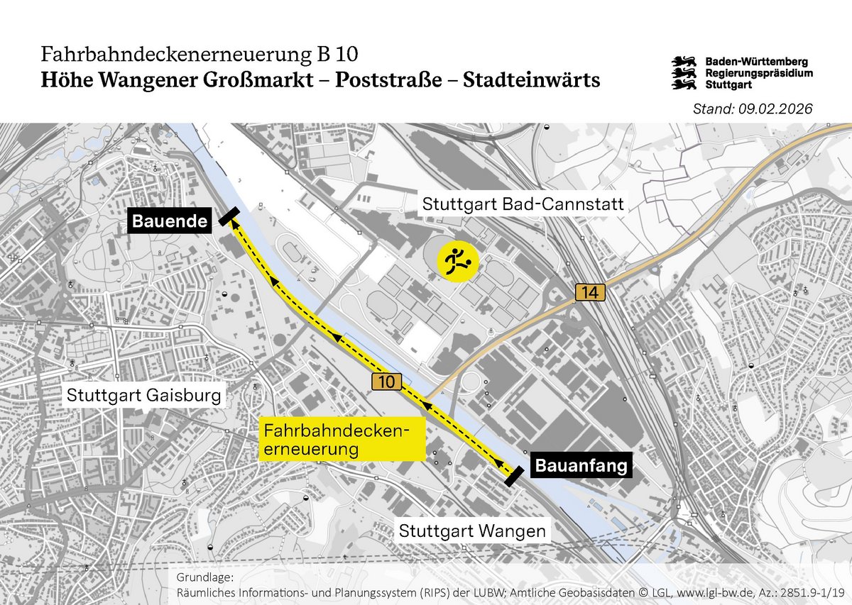 B 10 Fahrbahndeckenerneuerung Poststraße - Stuttgarter Großmarkt