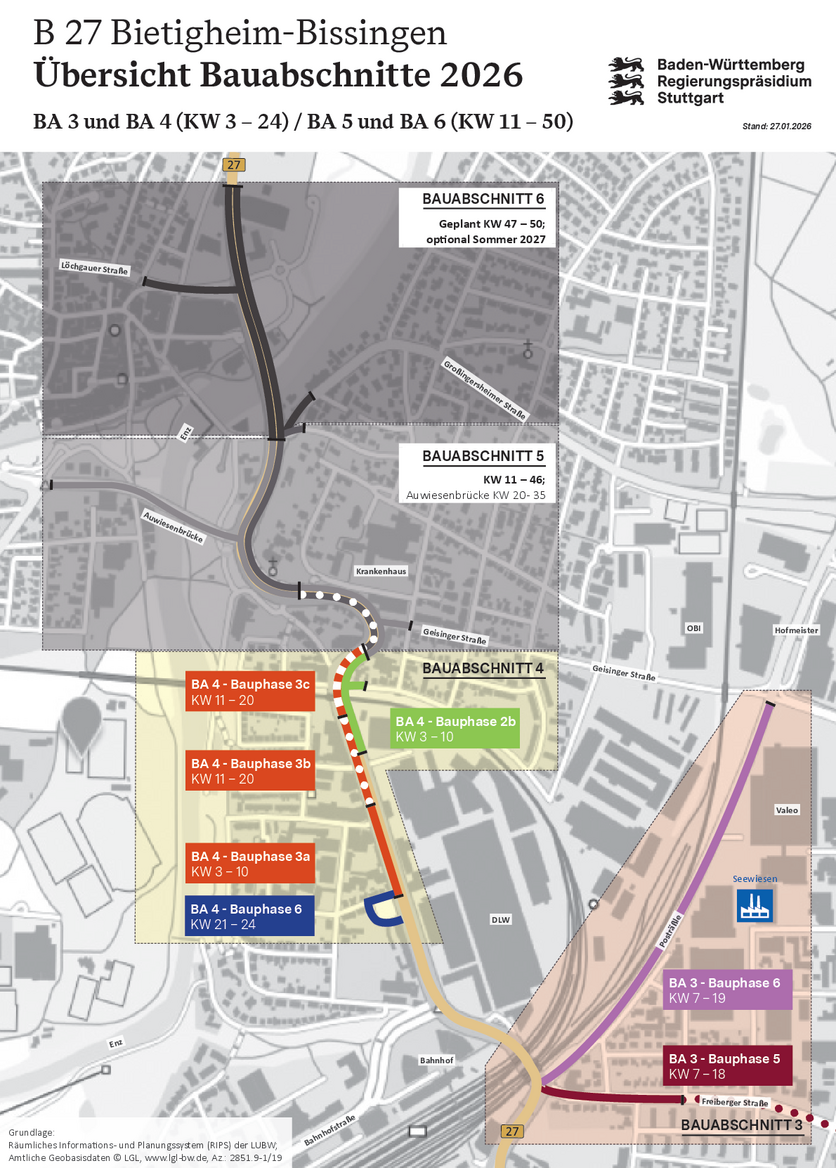 Für Informationen zur Straßenbaustelle der B 27 wenden Sie sich bitte an das Baureferat (baureferatwest@rps.bwl.de)