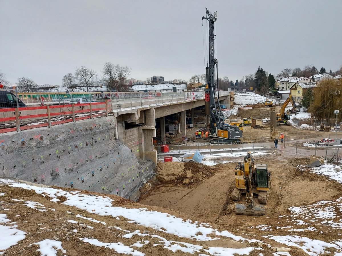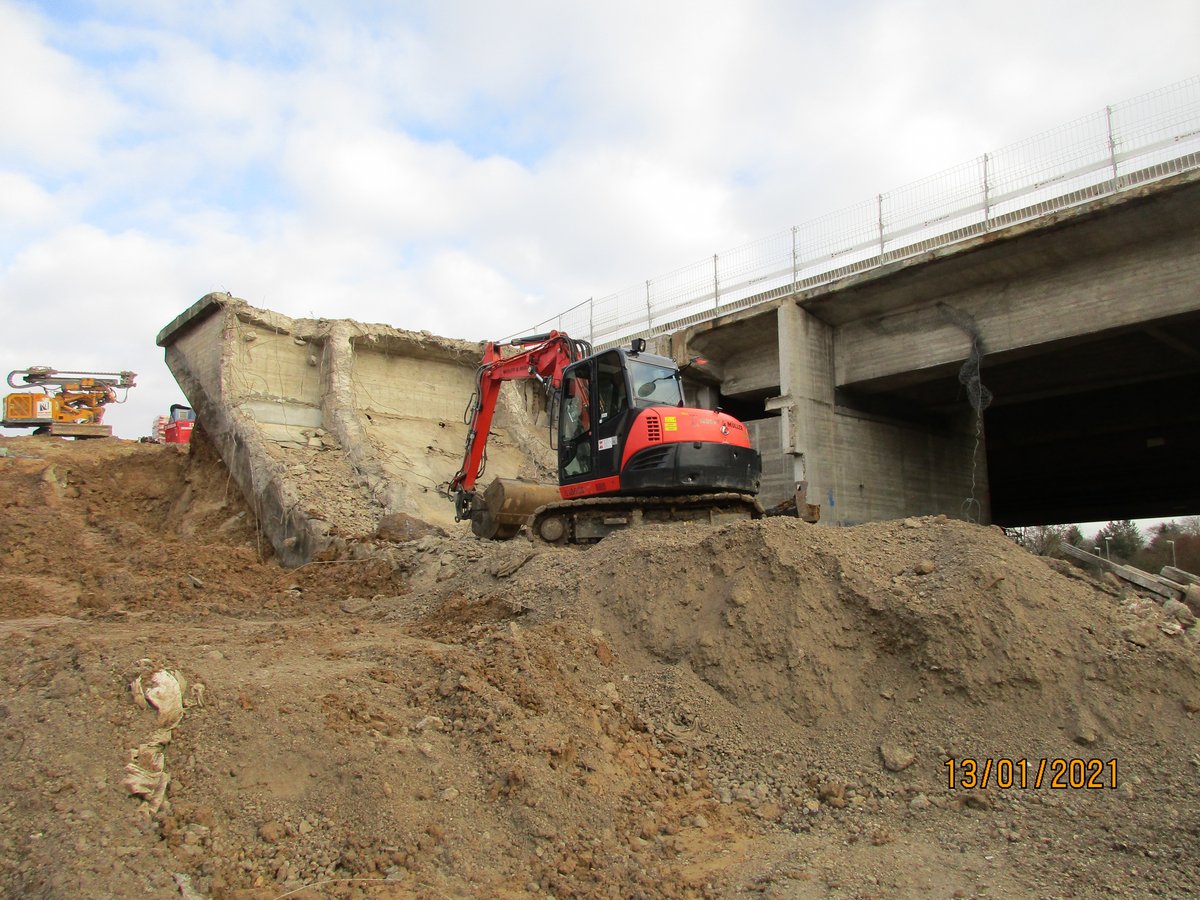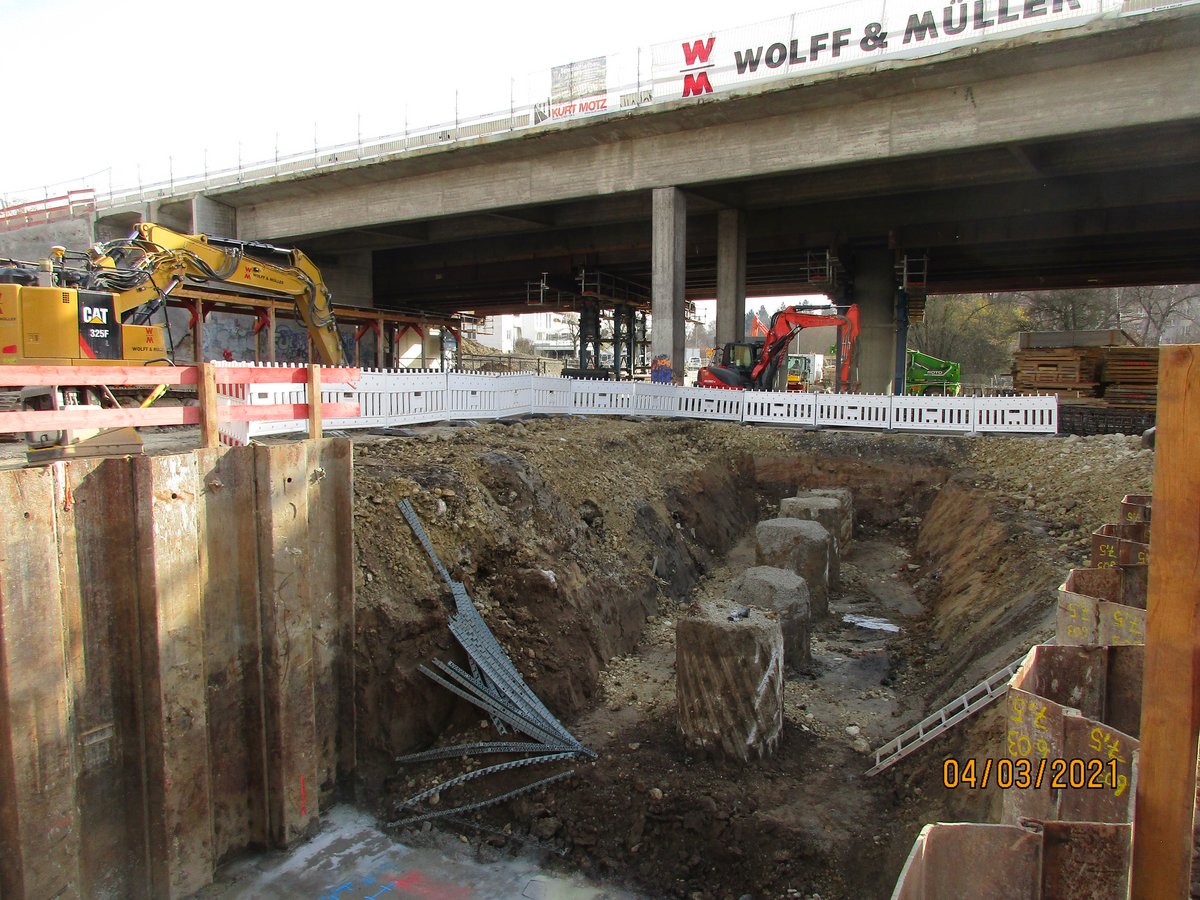 Nach dem Abbruch des alte östliche Brückenbauwerk wird in der dritten Bauphase der gesamt Verkehr auf das neue westliche Brückenbauwerk verlegt, so dass die endgültigen Widerlager sowie die Gründung für das neue östliche Brückenbauwerk hergestellt werden können. Darüber hinaus werden auch die östlichen Stütz- und Lärmschutzwände vor und nach dem östlichen Brückenbauwerk neu hergestellt.