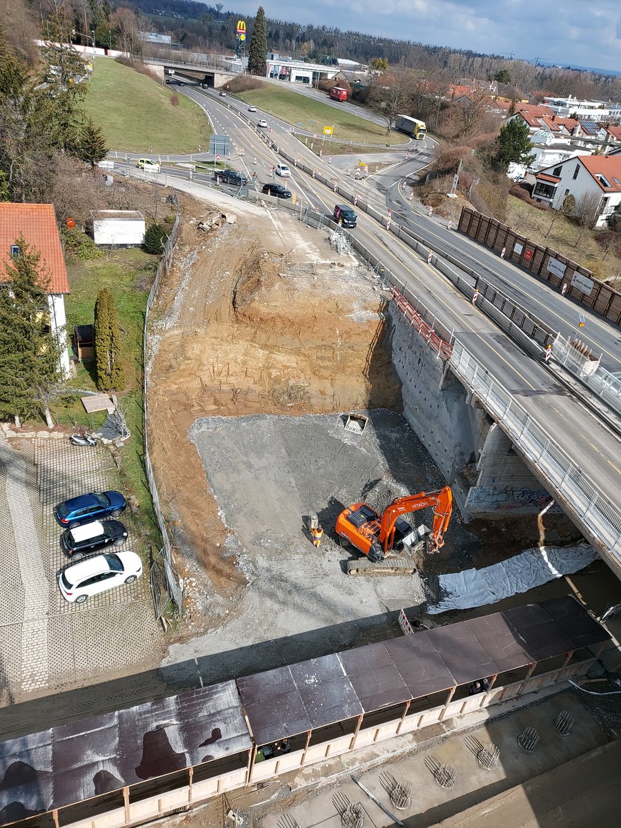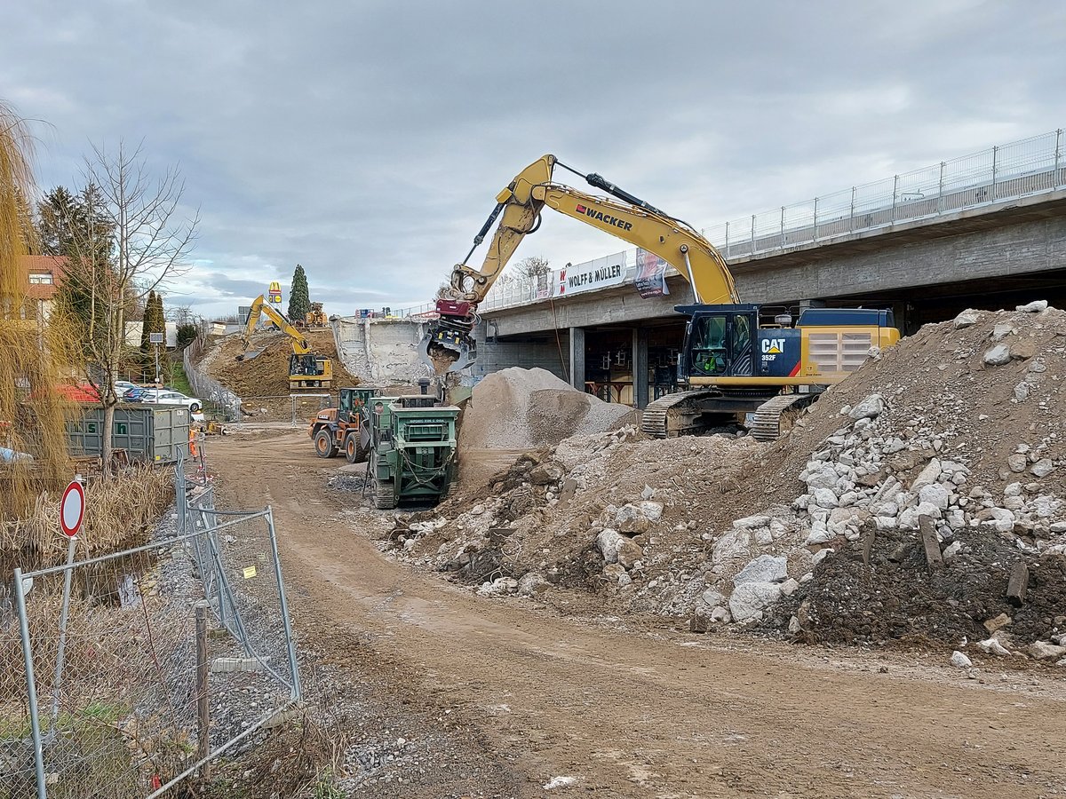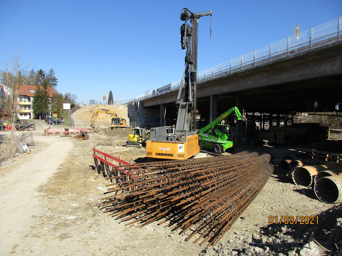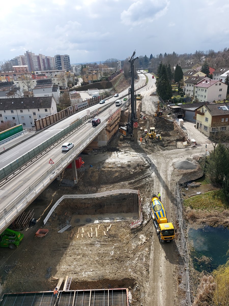 Nach dem Abbruch des alte östliche Brückenbauwerk wird in der dritten Bauphase der gesamt Verkehr auf das neue westliche Brückenbauwerk verlegt, so dass die endgültigen Widerlager sowie die Gründung für das neue östliche Brückenbauwerk hergestellt werden können. Darüber hinaus werden auch die östlichen Stütz- und Lärmschutzwände vor und nach dem östlichen Brückenbauwerk neu hergestellt.