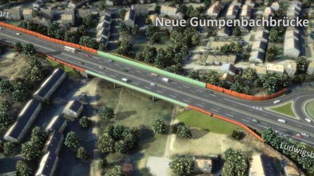 Aufgrund der festgestelltem Schäden an der Brücke, muss diese durch einen Neubau ersetzt werden. Zusätzlich zu dem Ersatzneubau der Gumpenbachbrücke erfolgen weitere Arbeiten: An der nördlich der Gumpenbachbrücke gelegenen Anschlussstelle Kornwestheim-Nord sind aktuell keine Ein- und Ausfädelstreifen vorhanden. Die neue Brücke wird daher mit einem breiteren Querschnitt gebaut. Dadurch können Ein- und Ausfädelungsstreifen neu angelegt und die Verkehrssicherheit und Leistungsfähigkeit der Anschlusstelle Kornwestheim-Nord deutlich verbessert werden.