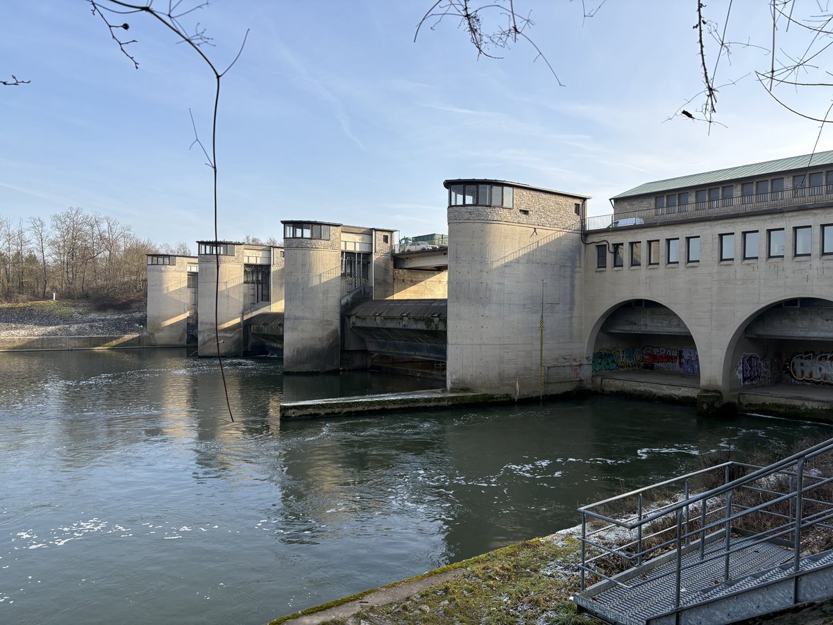 Die Wehrbrücke (Westseite) wurde 1952 als Spannbetonbrücke bestehend aus 3 Einfeldträgern und mit Stützweiten von 25,2, 26,8 und 25,2m erbaut. Die bei der Brücke verbauten Stromgewinnungsanlagen müssen vor dem Ersatzneubau ausgebaut werden. Die Wehrpfeiler der Brücke müssen erhalten bleiben.