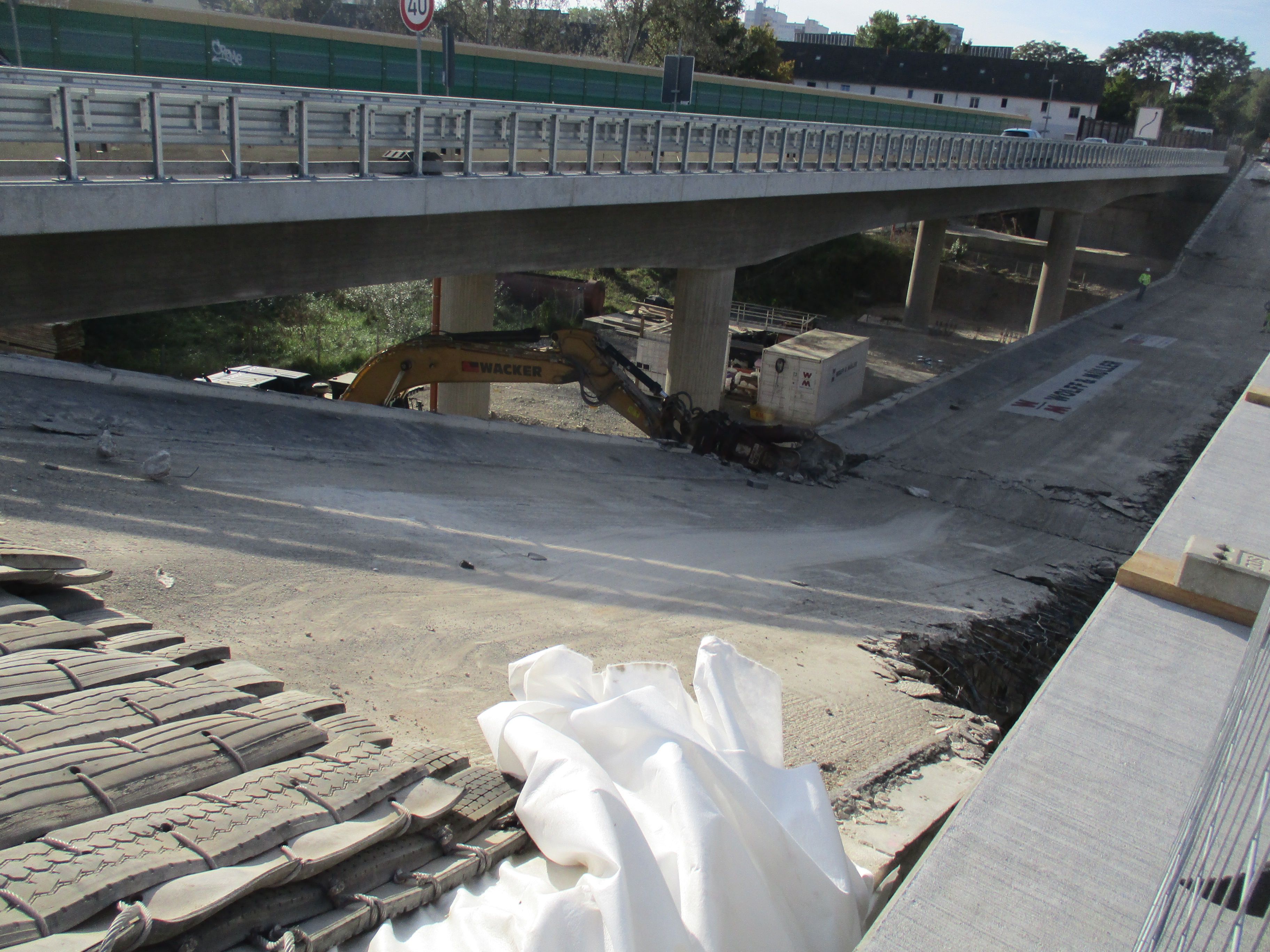 In der zweiten Bauphase wurde im Dezember 2020 das bestehende westliche Brückenbauwerk erfolgreich per Sprengung abgebrochen. Derzeit wird das westliche Brückenbauwerk an selber Stelle sowie die westlichen Stütz- und Lärmschutzwände vor und nach dem Brückenbauwerk neu gebaut. Zudem wurde parallel zu den Straßen- und Kanalbauarbeiten in Fahrtrichtung Stuttgart begannen Anfang September 2020 die Vorarbeiten für den Abbruch des alten östlichen Brückenbauwerks.