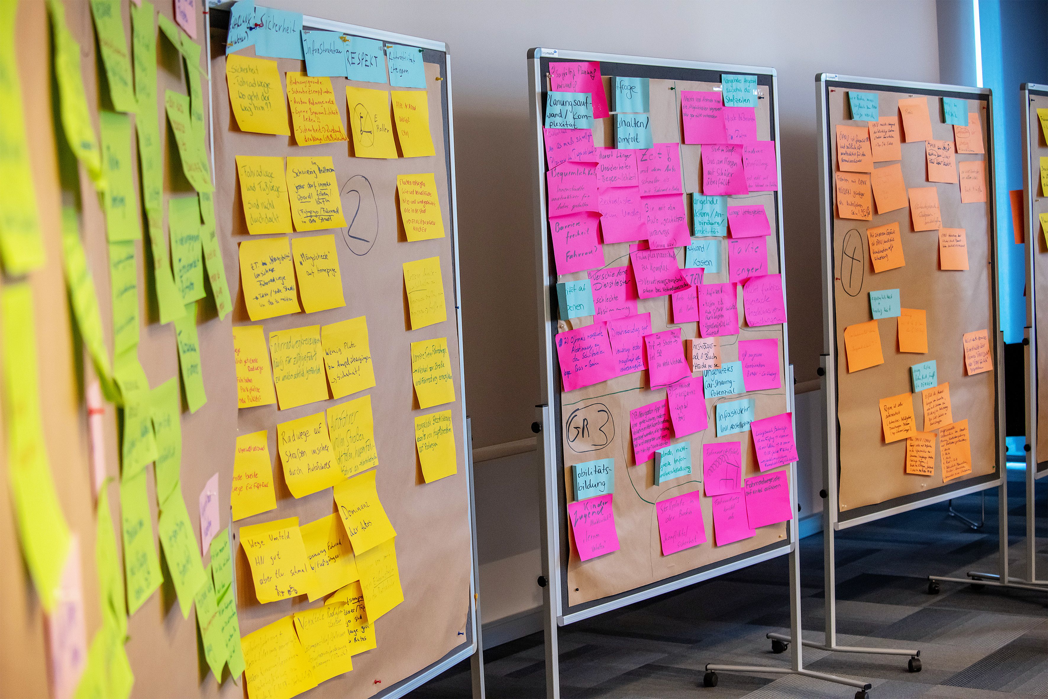 Bild 2: Die Ergebnisse der Kleingruppen wurden auf Stellwänden festgehalten und im Plenum zusammengetragen. (Bild: Regierungspräsidium Stuttgart, Irina Rebholz, jpg, 1,6 MB)