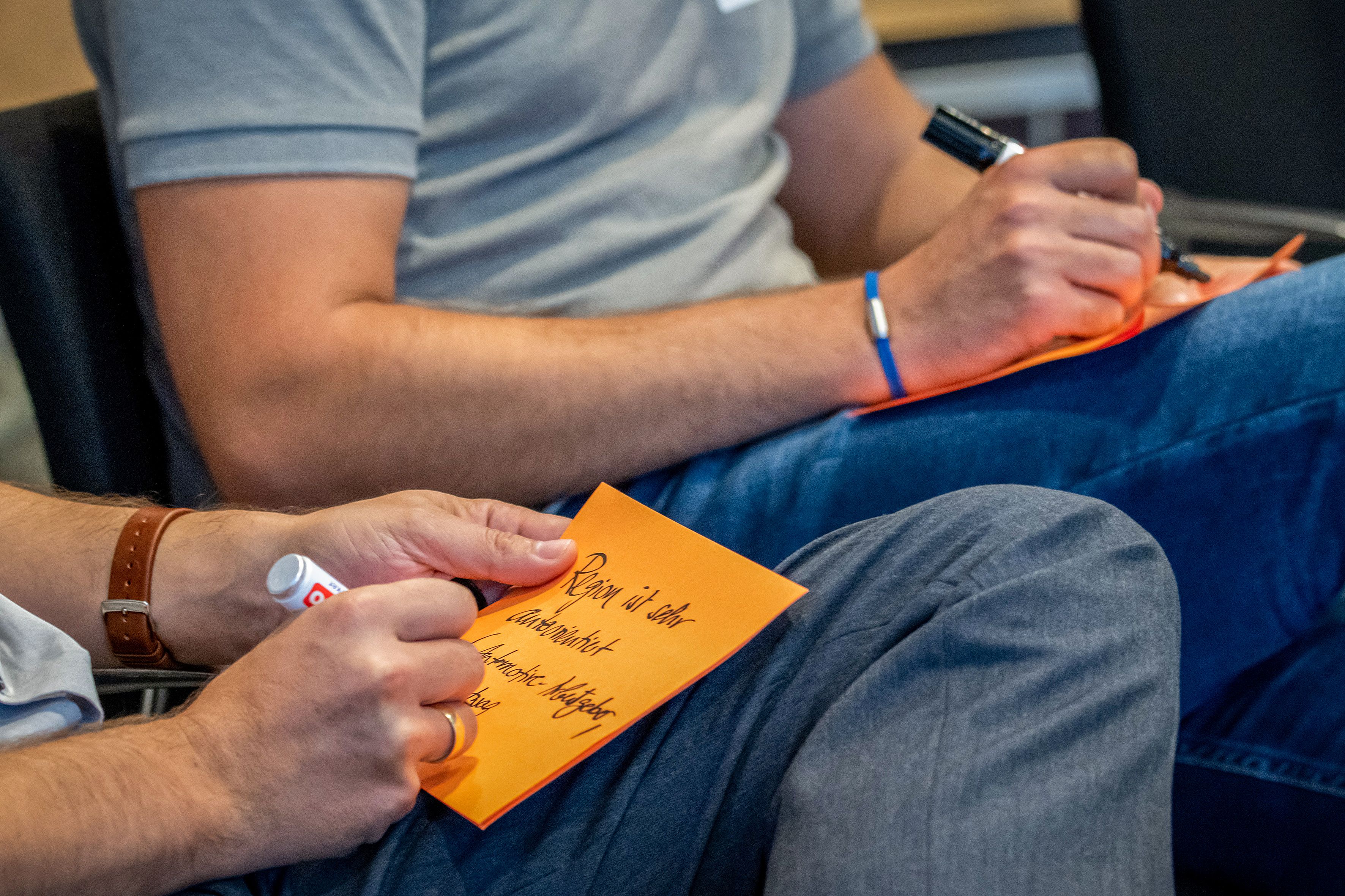 Bild 4: In der Kleingruppenarbeit schreiben die Teilnehmenden ihre Ideen und Beiträge auf Post-its. (Bild: Regierungspräsidium Stuttgart, Irina Rebholz, jpg, 1,6 MB)