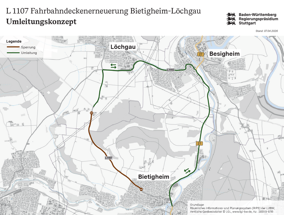 L 1107 Fahrbahndeckenerneuerung zwischen Bietigheim und Löchgau