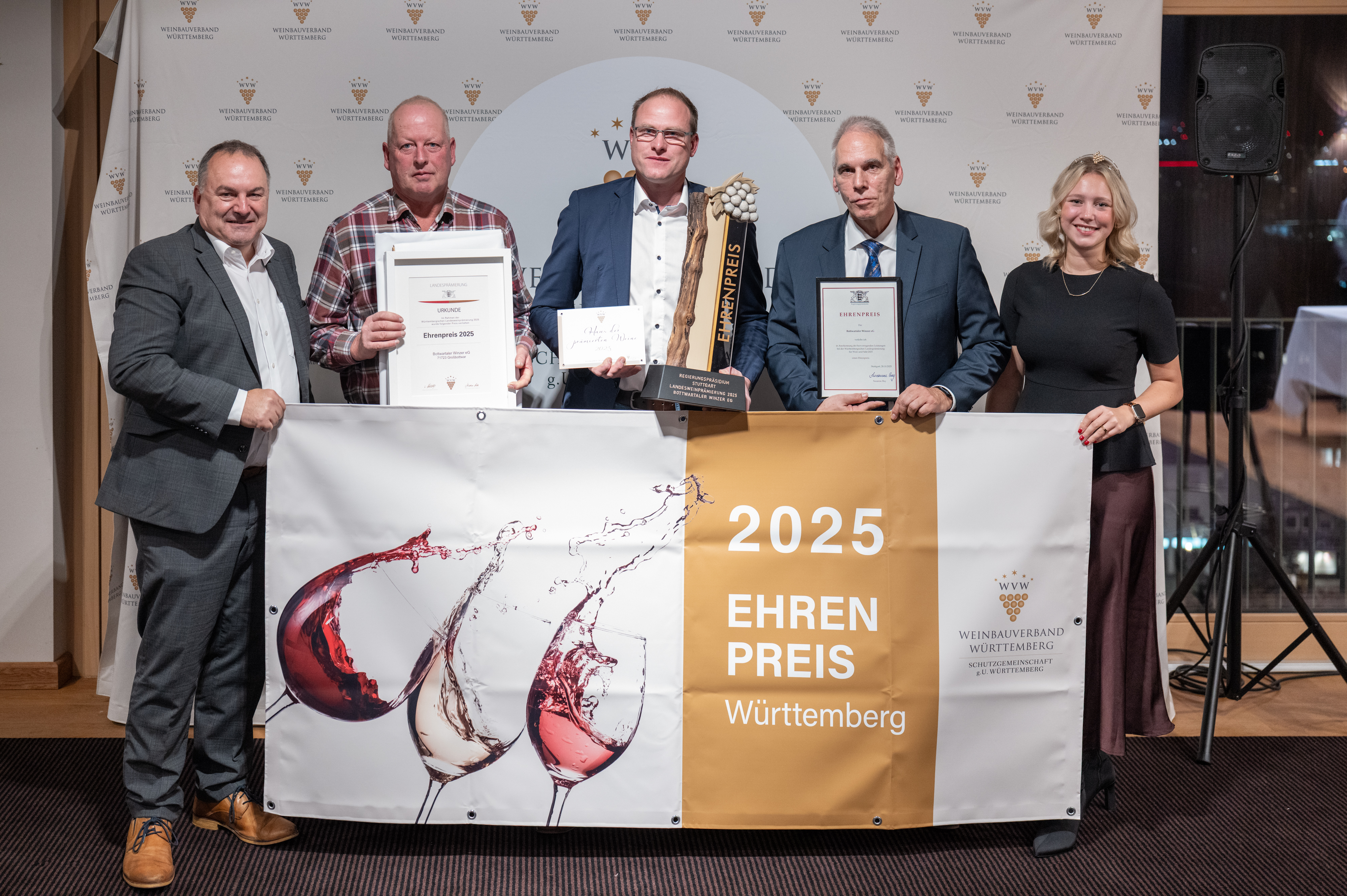 Im Rahmen der festlichen Verleihung der Landesweinprämierung am 28. Oktober 2025 in Heilbronn überreichte das Regierungspräsidium Stuttgart (RPS) den Ehrenpreis 2025 an die Bottwartaler Winzer eG aus Großbottwar. Die Genossenschaft wurde für ihre konsequente Qualitätsarbeit, ihren Gemeinschaftsgeist und ihren Beitrag zur Weiterentwicklung des württembergischen Weinbaus ausgezeichnet.