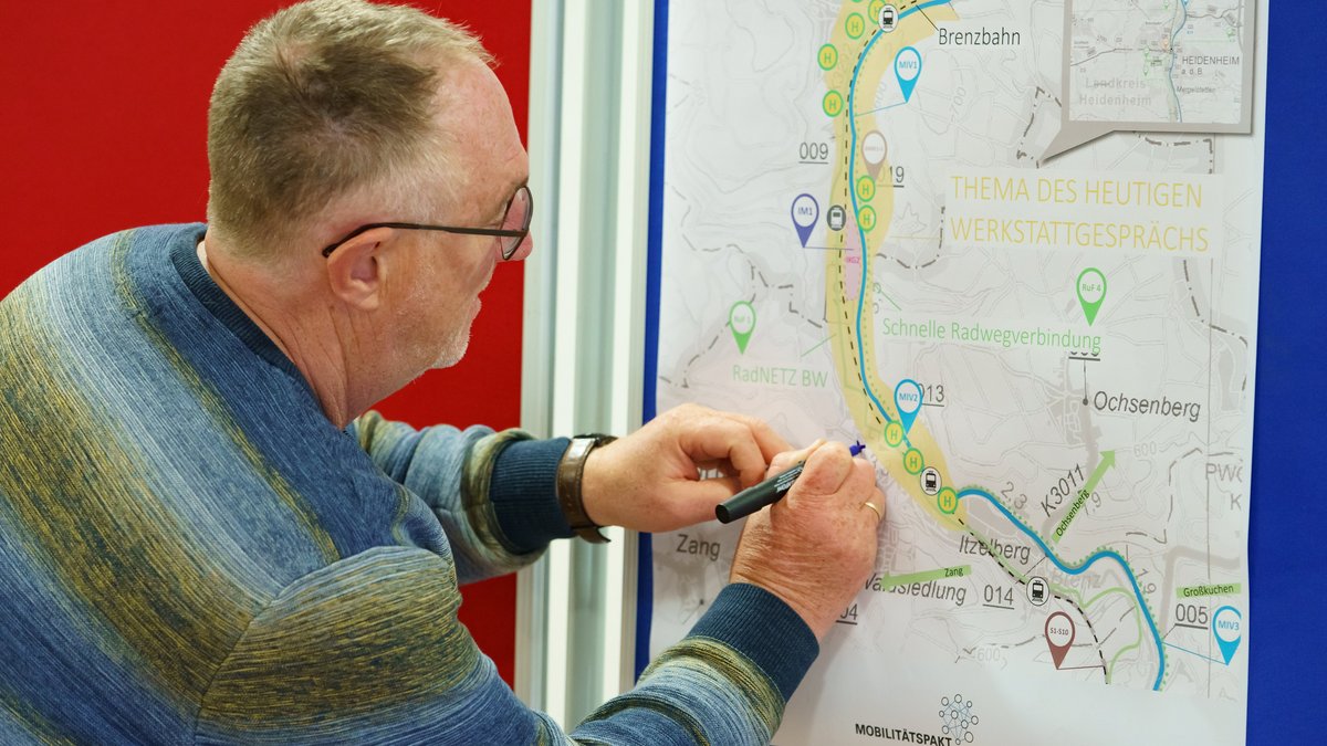 Das Werkstattgespräch stellte die Frage, welche Herausforderungen und Anforderungen im Mobilitätsbereich in dem Gebiet bestehen und wie diesen begegnet werden kann. In intensiven und konstruktiven Diskussionen wurden dabei mehr als 100 Anregungen und Hinweise eingebracht. Zum Beispiel merkten viele Teilnehmende an, dass der ÖPNV über Angebote wie dem Deutschlandticket bezahlbar bleiben muss. Die meisten sahen bei öffentlichen Verkehrsmitteln deutliches Verbesserungspotenzial bei der Zuverlässigkeit sowie bei der Verzahnung zwischen verschiedenen Bus- und Bahnlinien. Hier wurde auch eine häufigere Taktung gewünscht. Insbesondere am Abend und in weniger dicht besiedelten Gebieten erhielten die Partner des Mobilitätspaktes die Anregung, über innovative Formen des öffentlichen Verkehrs nachzudenken. Bezogen auf den Rad- und Fußverkehr besteht nach Ansicht der Teilnehmenden deutlicher Handlungsbedarf bei der Infrastruktur. Hier bedarf es eines weiteren Ausbaus, sowie einer Verbesserung der bestehenden Rad- und Fußwege, etwa durch verbesserte Abtrennungen und Beschilderungen. Für den Weg zur Arbeit sollte es aus Sicht vieler Teilnehmenden „zum Standard“ werden, mit dem Rad, Bus und Bahn unterwegs zu sein. Die Teilnehmenden hoben positiv hervor, dass der Zeiss-Werksbus zukünftig in den ÖPNV integriert werden soll und damit für alle nutzbar wird. Auch Ideen wie Fahrgemeinschaften und Maßnahmen des betrieblichen Mobilitätsmanagements wurden angeregt und diskutiert. Hier sollten auch Anreize durch die Arbeitgeber erfolgen. Bei der Vernetzung der Verkehrsmittel wurden Verbesserungsmöglichkeiten darin gesehen, dass es an Bahnhöfen mehr Parkmöglichkeit für PKW und sichere Abstellmöglichkeiten für Fahrräder sowie Radverleihkonzepte geben sollte.