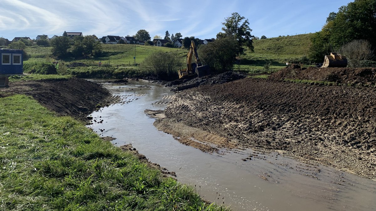 Auf Höhe des Sportgeländes Schrezheim wurde der Fluss in die neuen Schlaufen in den Auwiesen umgelenkt