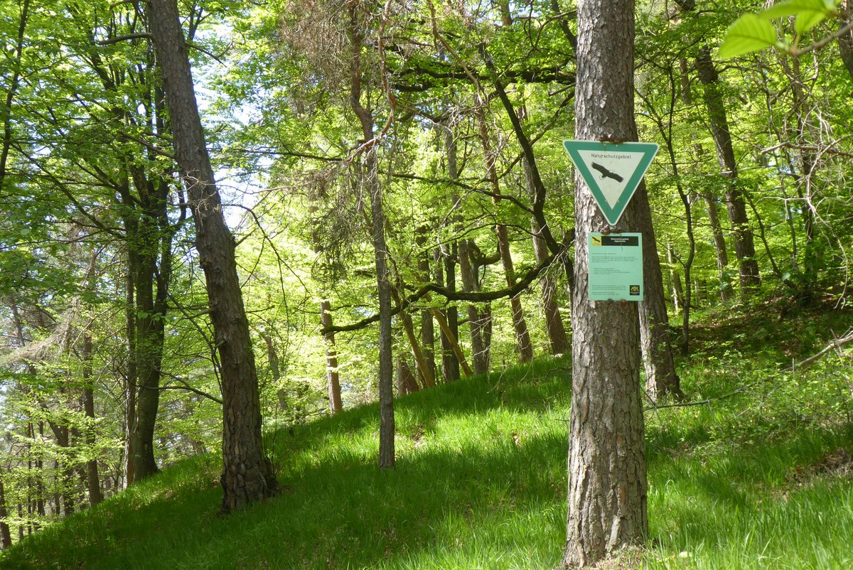 Bild 1: Das Naturschutzgebiet Jägerhölzle ist an den Zugängen beschildert. (Quelle: Ulrike Kreh) (jpg)