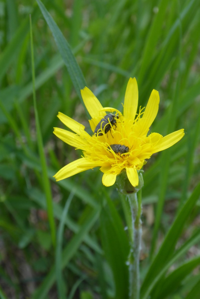Bild 4: Die Blüte der Niedrigen Schwarzwurzel wird von Käfern besucht, die den Pollen fressen. (Quelle: Ulrike Kreh) (jpg)