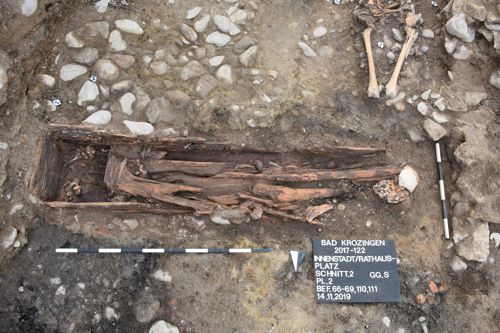 Die aktuelle Rettungsgrabung förderte nun tatsächlich wichtige Strukturen zur Ortsgeschichte im Zentrum Bad Krozingens zutage. Südlich der Basler Straße wurden erstmals die Überreste der römischen Zivilsiedlung von Bad Krozingen aufgedeckt, darunter drei Brunnen mit Holzkasten. „Diese Brunnen erlauben Rückschlüsse auf die Struktur der im 1. Jahrhundert nach Christus gegründeten und bis zu Beginn des 3. Jahrhunderts nach Christus genutzten Straßensiedlung, die bislang vor allem durch ihr Töpferareal südlich des mittelalterlichen Ortskerns bekannt ist“, erläuterte Marcel El Kassem, Gebietsreferent beim LAD.