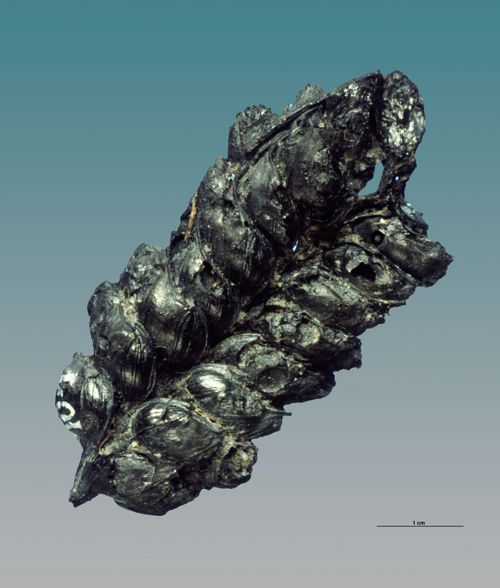Verkohlte Getreideähre aus der Fundstelle (Quelle: LAD, M. Erne)