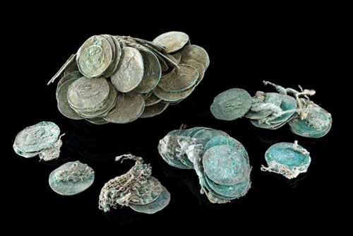 Restaurierte Münzen des Schatzfundes.