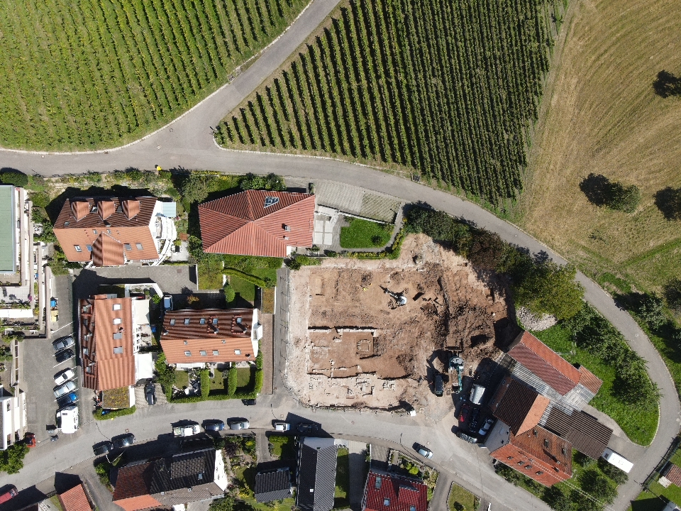 Bild 1: Die Grabungsfläche in Korb-Kleinheppach (Quelle: Landesamt für Denkmalpflege im Regierungspräsidium Stuttgart/ Ch. Kutz, Archäologische Ausgrabungen und Bauprojektbetreuung) (jpg, 710 KB) MB)