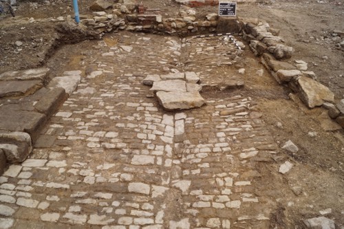 Gepflasterte Hofeinfahrt mit Abflussrinne (Foto: ArchaeoConnect)