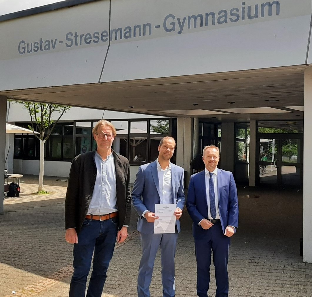 Das Gustav-Stresemann-Gymnasium in Fellbach hat seit gestern (24. Mai) einen neuen Schulleiter. Studiendirektor Daniel Meier tritt die Nachfolge von Marcus Vornhusen an, der auf die Schulleiterstelle am Burg-Gymnasium Schorndorf gewechselt hatte. Damit ist die Interimsphase, in der Studiendirektor Armin Dunz als Stellvertretender Schulleiter die Schule kommissarisch geleitet hat, beendet.