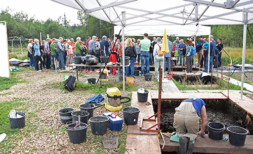 Im Sommer konnten sich über 7500 Besucherinnen und Besucher davon vor Ort überzeugen, bei den archäologischen Arbeiten zuschauen und einen Blick in die Feldlabors werfen. Außerdem wurden regelmäßig Führungen angeboten und an den Wochenenden erläuterten Expertinnen und Experten des Landesamts für Denkmalpflege ihre Arbeit in Spezialbereichen wie Tierknochenanalyse, Dendrochronologie, Sedimentansprache, Analyse botanischer Makroreste usw. Auf einer aktuellen Ausgrabung konnte so exemplarisch vermittelt werden, wie Feuchtbodensiedlungen ausgegraben werden und welches wissenschaftliche Potential in ihnen steckt. Die Bedeutung der Baden-Württembergischen „Pfahlbauten“, die seit 2011 UNESCO Weltkulturerbe sind, war hautnah (an)fassbar, vom kleinsten verkohlten Getreidesamen bis zu großen Baubefunden.