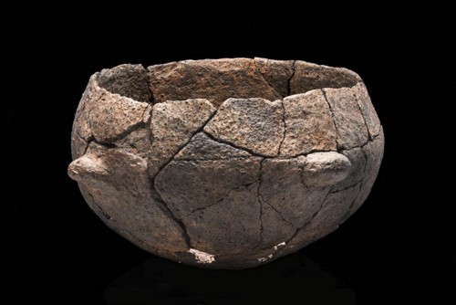 Restauriertes Großgefäß mit Knubben aus einer Abfallgrube im Zentrum der Siedlungsfläche, Foto: Yvonne Mühleis / LAD