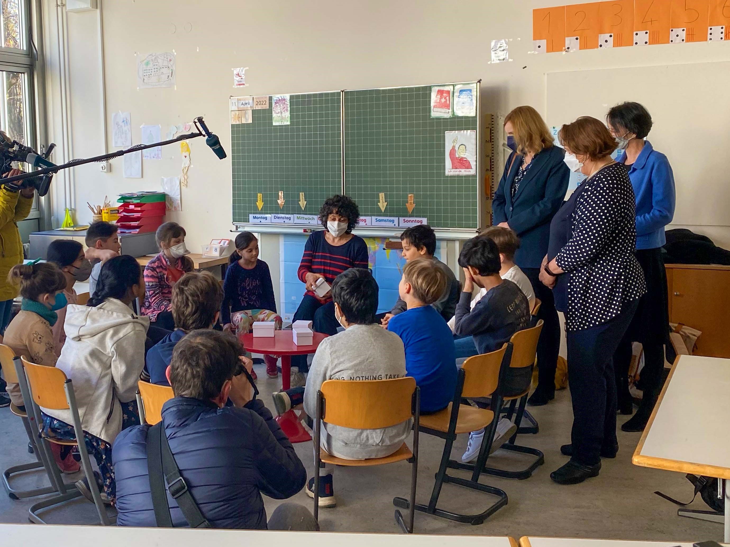 In Baden-Württemberg erhalten immer mehr schutzsuchende Kinder und Jugendliche aus der Ukraine Unterricht. Etwa 8.000 geflüchtete Schülerinnen und Schüler aus der Ukraine sind an Schulen im Südwesten angekommen. In so genannten Vorbereitungsklassen (VKL) werden neu zugezogene Kinder ohne Deutschkenntnisse unterrichtet – unabhängig von ihrer Nationalität. Einen Eindruck vom Unterricht in einer solchen VKL haben sich heute (11. April) Kultusministerin Theresa Schopper, die Bürgermeisterin für Jugend und Bildung der Stadt Stuttgart, Isabel Fezer, die Regierungspräsidentin des Regierungspräsidiums Stuttgart Susanne Bay und die stellvertretende Leiterin des Staatlichen Schulamts Stuttgart Birgit Popp-Kreckel an der Ameisenbergschule in Stuttgart-Ost verschafft.