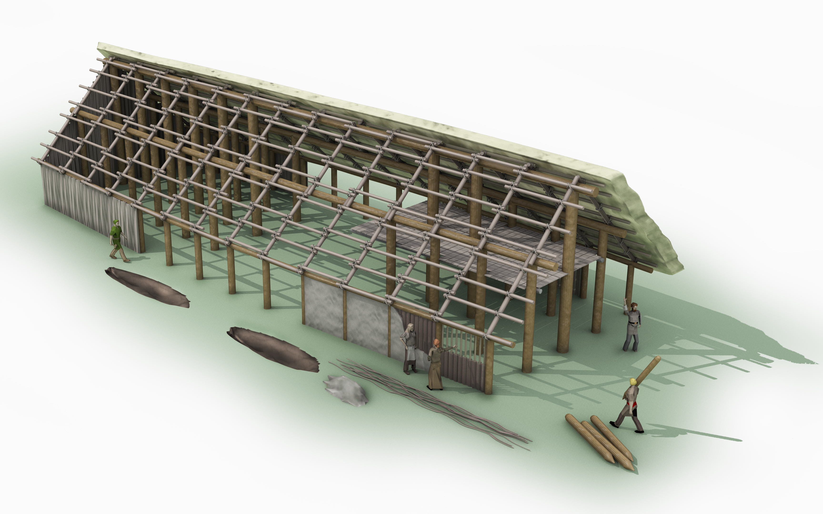 Rekonstruktion eines linearbandkeramischen Langhauses, Quelle: Landesamt für Denkmalpflege im Regierungspräsidium Stuttgart/ M. Steffen