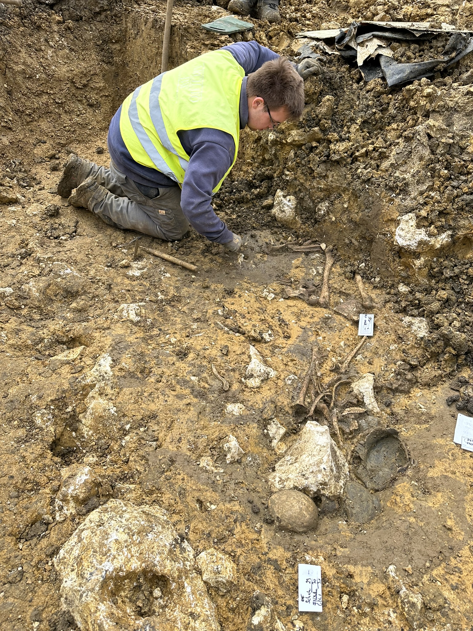 Ausgrabung menschlicher Knochen (jpg, 2.1 MB); Landesamt für Denkmalpflege im Regierungspräsidium Stuttgart/Bild: Gizem Dakmaz