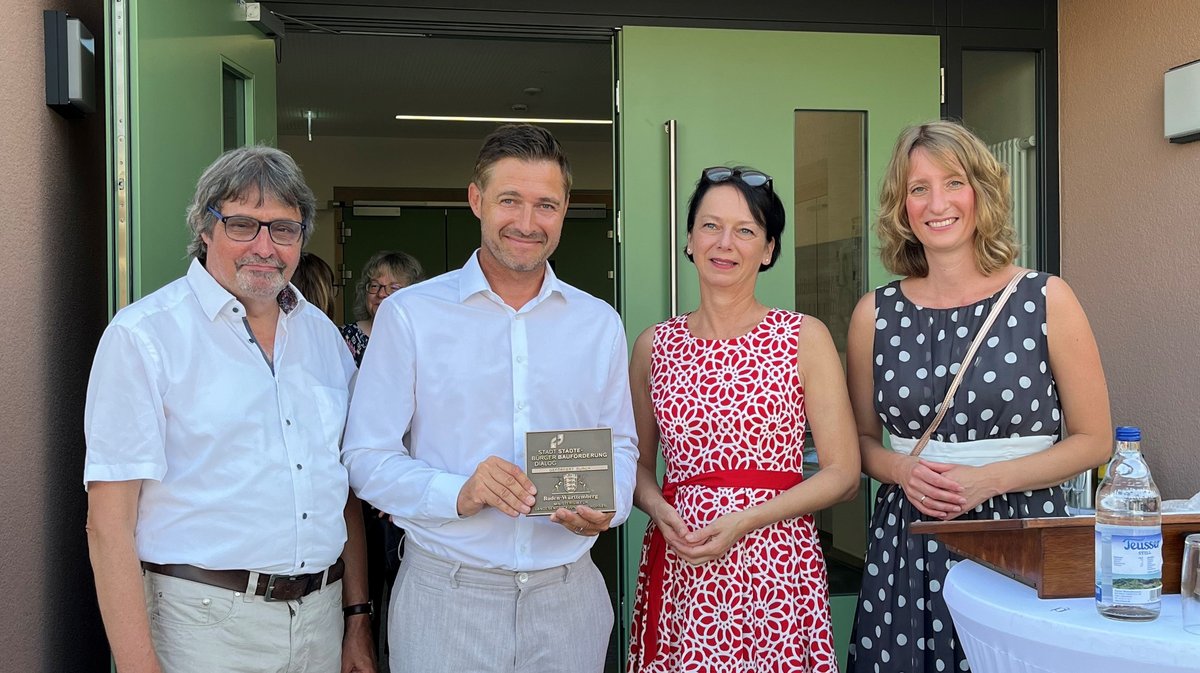Regierungspräsidentin Susanne Bay hat heute (Dienstag, 13. August 2024) Bürgermeister Björn Steinbach für das neu errichtete Michelbachhaus in der Gemeinde Obersulm eine Bronzeplakette des Landes Baden-Württemberg übergeben. Ausgezeichnet wird mit dem Michelbachhaus ein außergewöhnliches Gebäude, das Sport, Musik und Bildung unter einem Dach vereint. Mit der Bronzeplakette des Landes werden besonders herausragende Projekte der Städtebauförderung ausgezeichnet.