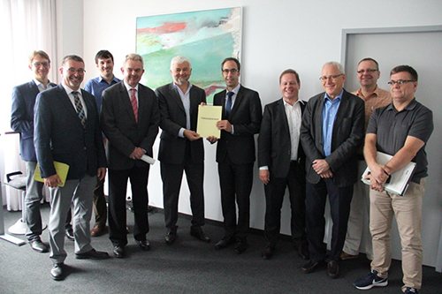 Dr. Christian West, Abteilungspräsident Dr. Kurt Mezger (Regierungspräsidium Stutt-gart), Christoph Roll, Kämmerer Gemeinde Braunsbach, Erster Landesbeamter des Landkreises Schwäbisch Hall, Michael Knauss, Regierungspräsident Wolfgang Reimer, Bürgermeister Frank Harsch, Rainer Heckhausen, Konrad Störk, Thomas Aufmuth und Peter Dresen (Regierungspräsidium Stuttgart)