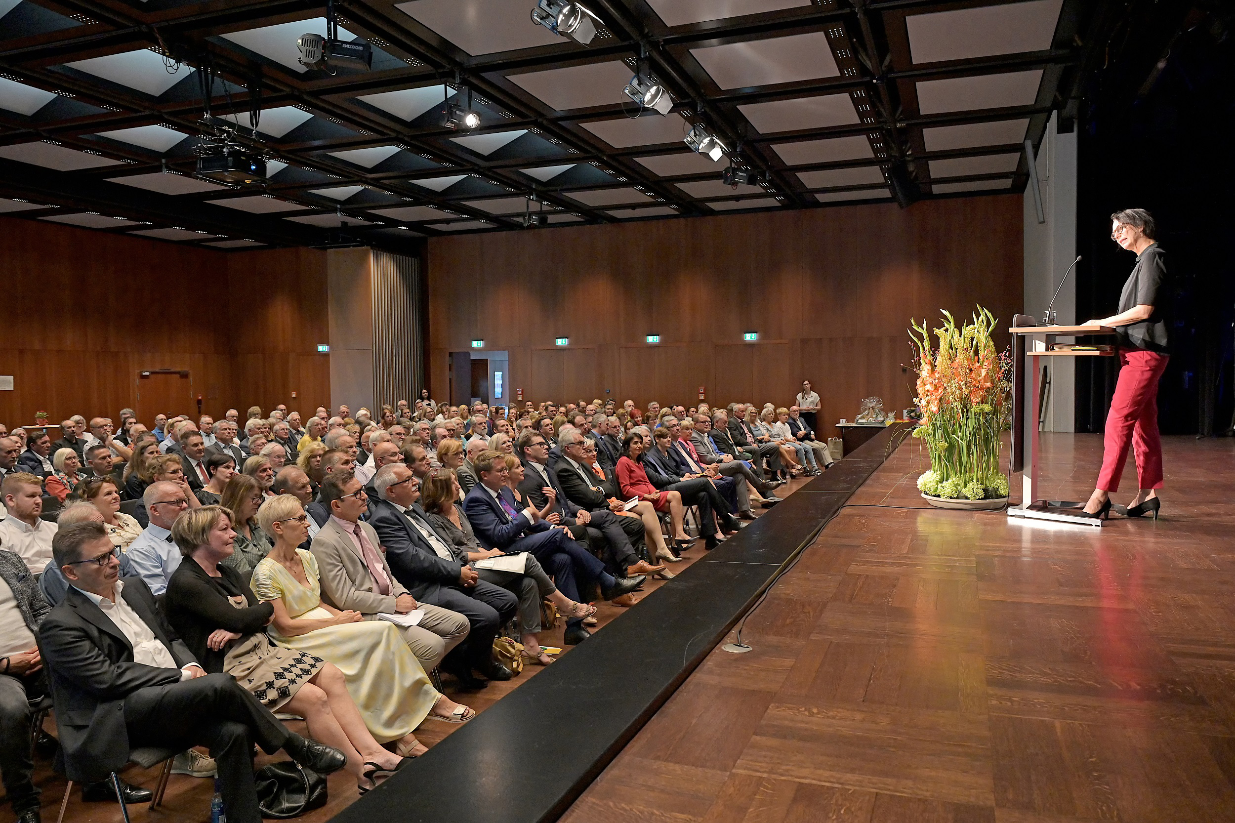 Regierungspräsidentin Susanne Bay bedankte sich bei der Verabschiedung von Oberbürgermeisterin Ursula Keck vor vollem Haus für die kooperative und tiefgehende Zusammenarbeit