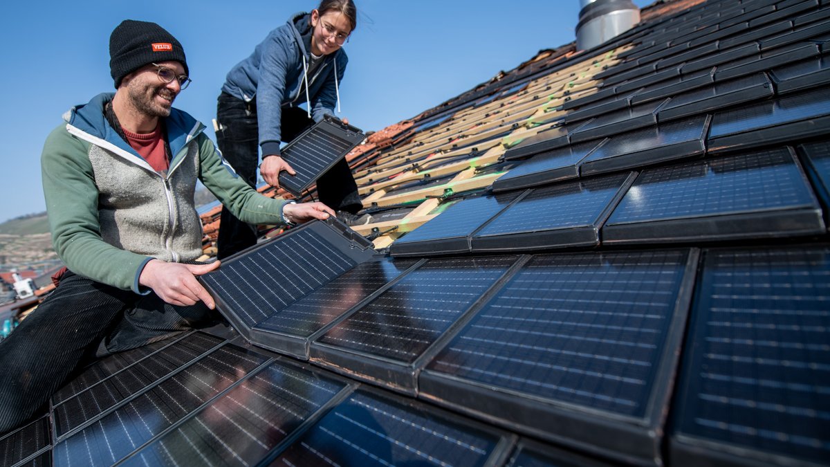 Bild 4: Verlegen der Solardachziegel (jpg, 7.9 MB) Quelle: LAD, U. Regenscheit