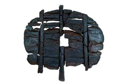 Hölzernes Scheibenrad mit quadratischem Achsloch aus Olzreute-Enzisholz, Bad Schussenried, Kreis Biberach. Eines von drei großen Scheibenrädern um 3000 v. Chr.; die Räder aus Olzreute gehören zu den ältesten Rädern der Welt