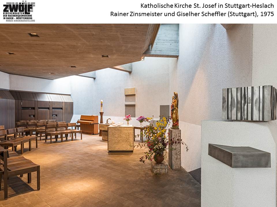 Zwei Jahre mussten Fans des modernen Kirchenbaus in Baden-Württemberg warten. Die Wanderschau „ZWÖLF – Kirchenbauten der Nachkriegsmoderne in Baden-Württemberg“, musste pandemiebedingt pausieren. Jetzt geht die Ausstellung, die zwölf virtuose Raumschöpfungen der 1960er- und 1970er-Jahre aus raffinierten Formen und geschickt eingesetzten Materialien zeigt, mit Station Nummer 10 in Stuttgart-Heslach wieder an den Start. In der katholischen Kirche St. Josef – erbaut 1970 bis 1975 nach Plänen der Architekten Rainer Zinsmeister und Giselher Scheffler – zeigt die Schau beispielhafte Vertreter für diese theologische wie architekturgeschichtliche Umbruchzeit im Kirchenbau nach 1945. Sie ist dort von Sonntag, 3. April, bis Donnerstag, 28. April 2022, zu besichtigen. Die Kirche und die Ausstellung sind zu den normalen Öffnungszeiten zu besichtigen. Dabei gelten die aktuellen Corona-Bestimmungen. Der Eintritt ist frei.