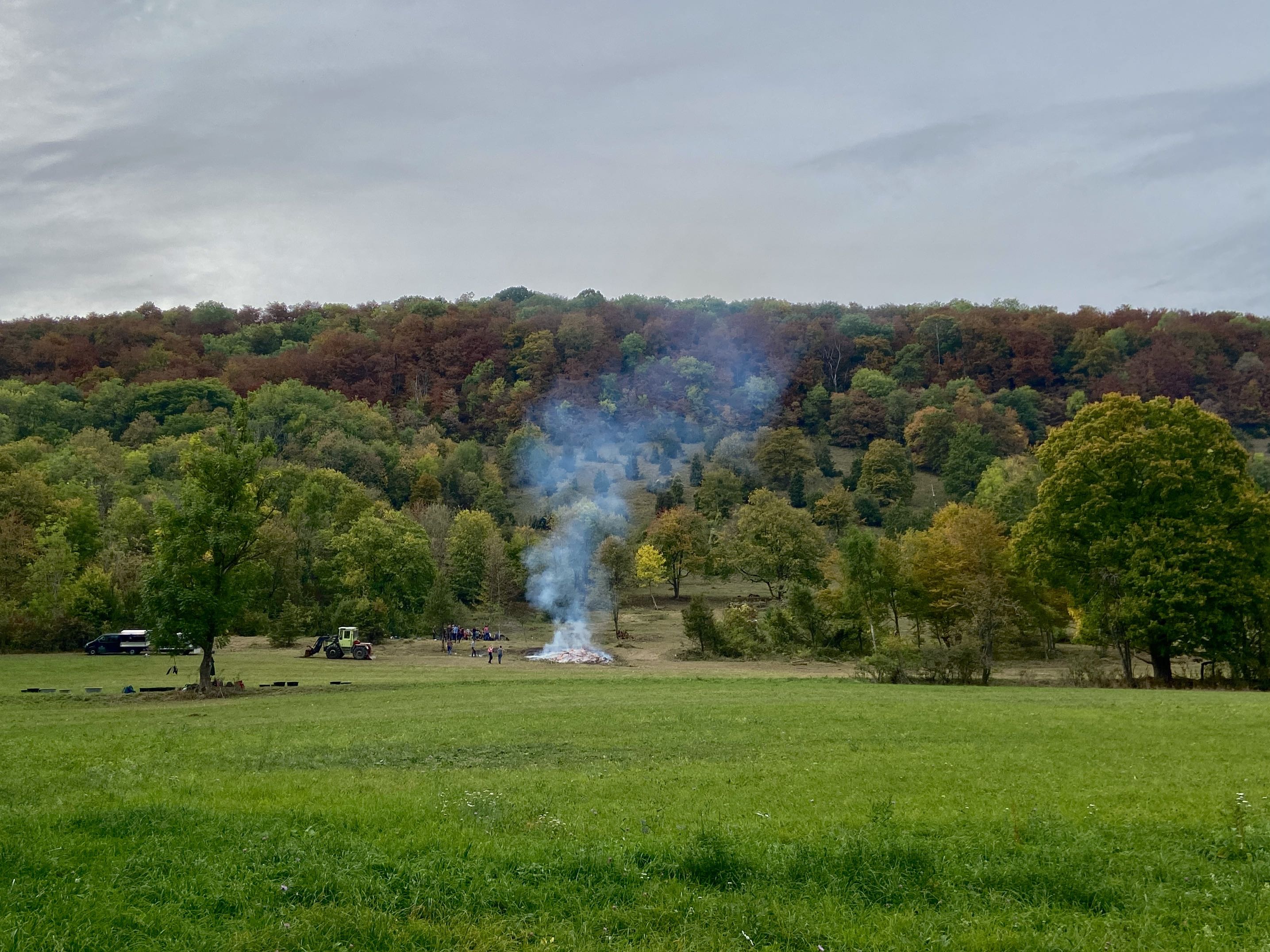 Steil und anstrengend – so lautete das Resümee des Landschaftspflegetags. Die Teilnehmerinnen und Teilnehmer haben trotzdem gerne den Schreibtisch gegen Arbeitshandschuhe und Rechen getauscht, um in der Natur zu arbeiten. Durch den Einsatz wird die Fläche für die natürlichste Art der Landschaftspflege vorbereitet: die Beweidung durch Schafe und Ziegen. Schließlich konnte man sich auch einen persönlichen Eindruck vom Nutzen dieser Pflegemaßnahmen verschaffen: Ein paar Schmetterlinge und Heuschrecken waren noch unterwegs, und vielfältige Heidepflanzen, wie Silberdistel und Fransen-Enzian, gab es auch zu sehen.