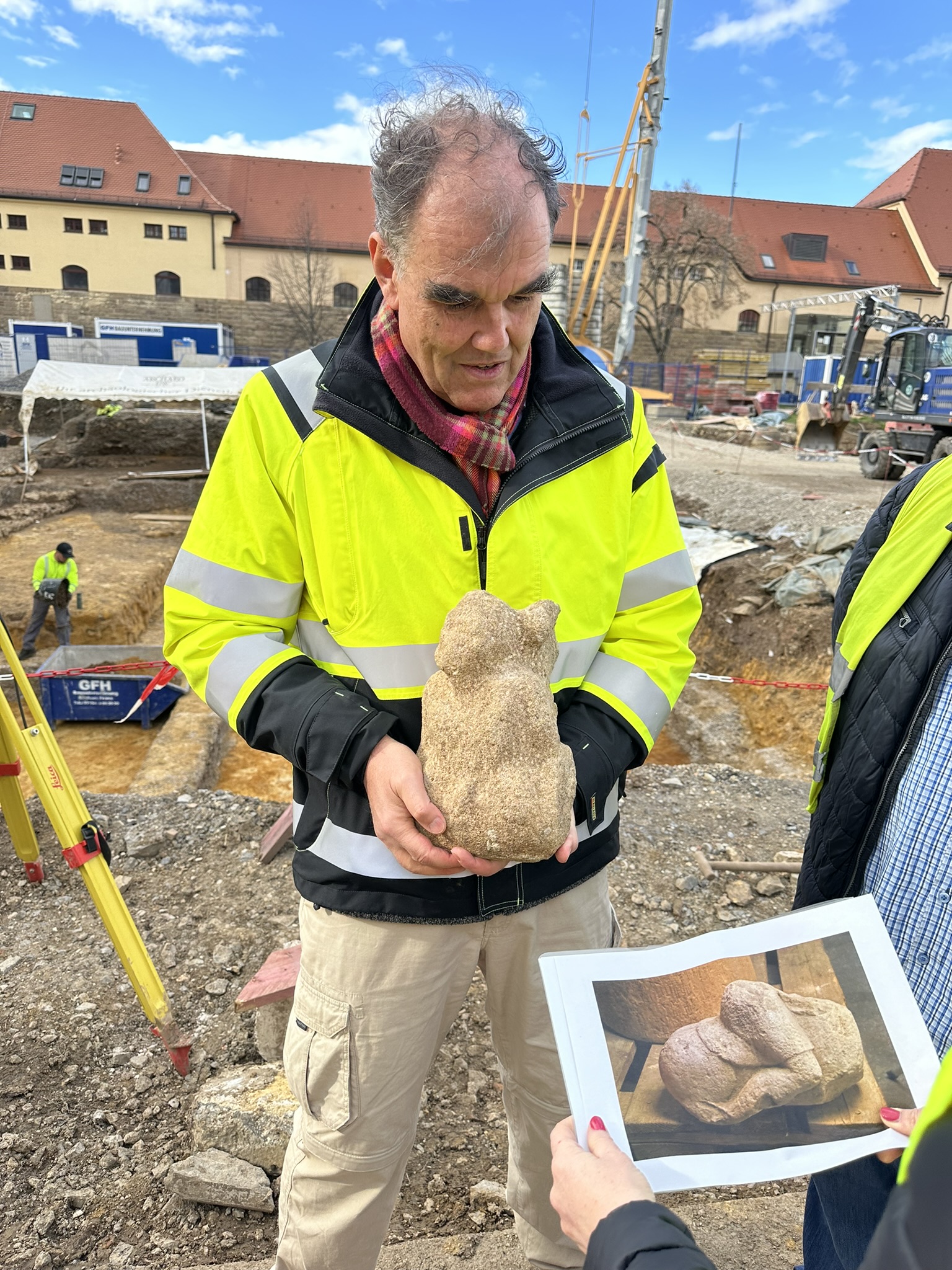 Bild 4: Dr. Andreas Thiel vom LAD mit dem der Steinfigur (Foto: LAD/G. Dakmaz) (jpg, 1.2 MB)