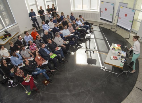 Mit der Komplexität der Prozesse wandeln sich auch die Anforderungen an die Kompetenzen von Gestaltern in der Produktentwicklung. Wie kann Kollaboration funktionieren, im Team, mit Kunden und Nutzern? Mit Wanja Steinmaier von der Designagentur Lumod erfuhren die Teilnehmer am Beispiel eines mittelständischen Entwicklungsclusters praxisnah, wie Design die unterschiedlichen Akteure in komplexen Prozessen zu Innovationen antreibt: „Innovation durch Kooperation: Erfolgsstrategien für den Designer im mittelständischen Prozessmanagement“.