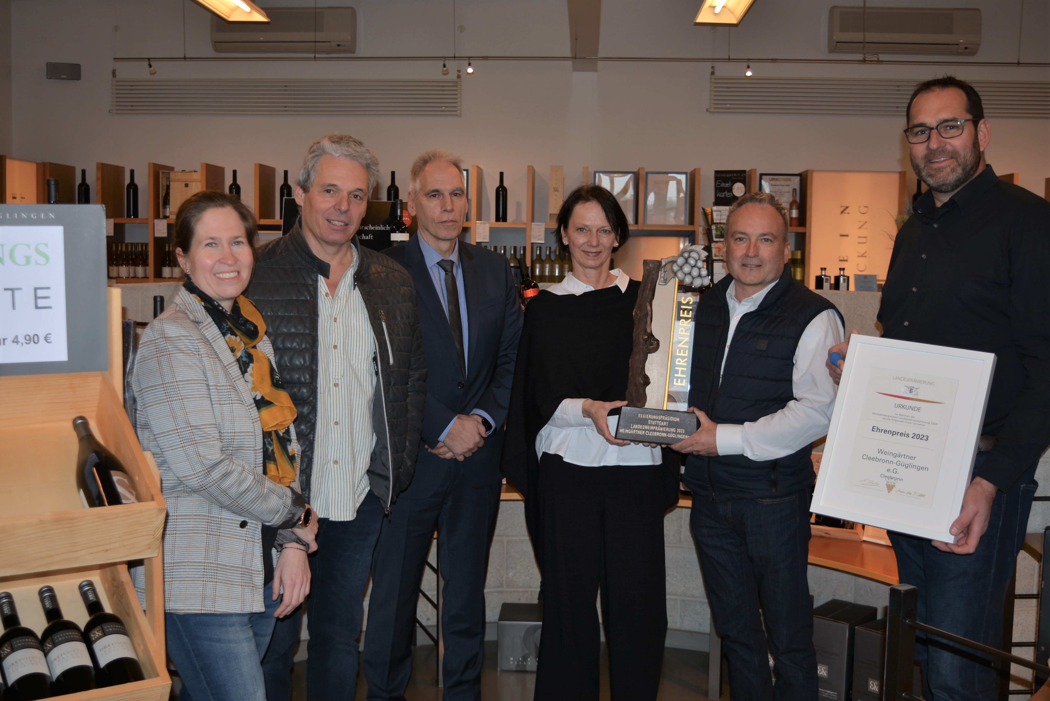 Jedes Jahr kürt der Weinbauverband Württemberg im Rahmen der Landesweinprämierung die herausragenden Weinbaubetriebe im Ländle – so auch im Oktober 2023, als der Ehrenpreis der Landesweinprämierung Württemberg des Regierungspräsidiums Stuttgart (RPS) an die Weingärtnergenossenschaft Cleebronn-Güglingen verliehen wurde: Das RPS würdigte damit das Engagement der Genossenschaft für die regionale Weinwirtschaft und die konstant hohe Qualität der Erzeugnisse.